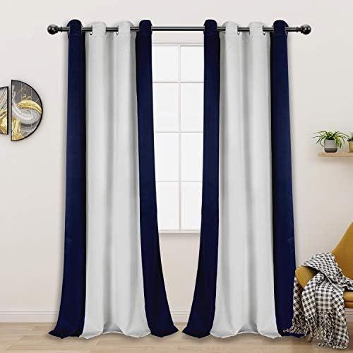 These curtains are made from a durable 100% polyester composition, boasting a luxurious texture and a beautiful color block design in navy and greyish white. Crafted in a certified STANDARD 100 by OEKO-TEX factory, they effectively block out over 90% of sunlight and UV rays, making them ideal for bedrooms and living rooms alike. With their thick triple weave structure, these panels not only offer excellent light-blocking capabilities but also help reduce external noise, creating a serene environment. The energy-efficient nature of the curtains acts as a barrier to regulate indoor temperatures, keeping your space cooler in summer and warmer in winter.