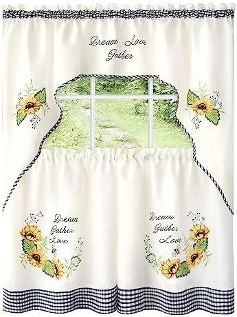 Create the perfect ambiance in your home with this delightful window treatment set, designed to infuse warmth and charm into any space. The combination of sunflower motifs with contrasting gingham checks offers a fresh, country-inspired look that enhances the decor in kitchens, bedrooms, living rooms, and dining areas. The set includes a swag and two tiers, together measuring a generous width of 58 inches and a length of 24 inches, ensuring a full-window appearance and beautiful light filtration. The fabric is made from machine-washable polyester, which not only drapes elegantly but is also easy to maintain.