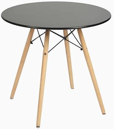 This round dining table is an excellent addition to any cozy setting, designed to accommodate 2-4 diners. Its sleek black finish and mid-century modern aesthetics make it versatile enough to harmonize with various chair styles and decor themes. Constructed with thick engineered wood and supported by robust powder-coated steel legs with a beech wood appearance, it promises durability while adding elegance to your space. The dimensions of 31.5 inches by 31.5 inches are ideal for small gatherings, making it easy to enjoy meals, coffee, or casual chats without crowding your space.