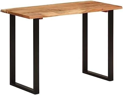 This dining table is crafted from solid acacia wood, which brings both stunning natural beauty and exceptional durability to your kitchen or dining area. The unique original shapes and edges of the wood are intentionally processed to highlight its character, making each table a one-of-a-kind addition to your home. With dimensions of 43.3″ x 19.7″ x 29.9″, it fits perfectly in various settings, whether it be a cozy dining room, modern kitchen, trendy bistro, or a bustling restaurant. The sturdy black iron legs not only enhance the robust construction but also contribute to its industrial aesthetic, ensuring stability for all your dining experiences.