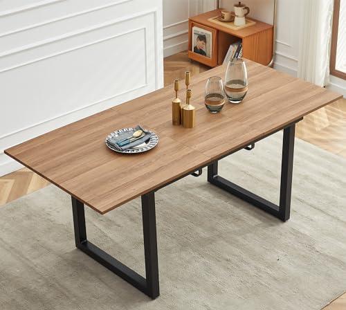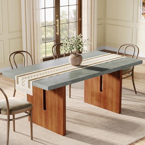 This visually appealing dining table seamlessly blends rustic charm with contemporary elegance, making it a fantastic addition to various living spaces. Constructed from high-quality E1 MDF board, it showcases a sturdy build that supports up to 220 pounds, ensuring it can handle family meals and gatherings with ease. The smooth, water-resistant surface makes cleaning a breeze, while the included vintage-style table runner adds a touch of sophistication and warmth to any dining experience. With dimensions of 63 inches long and 31.1 inches wide, it comfortably seats 4-6 people, perfect for intimate family dinners or entertaining friends.