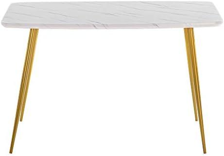 This stylish dining solution features a beautiful faux white marble top that brings elegance to any dining room, kitchen, or living space. With a dimension of 47.25 x 29.13 x 29.92 inches, it offers ample space for family meals or entertaining guests. The robust construction, made from MDF laminated particleboard paired with powder-coated metal legs, ensures stability and longevity, making it an excellent choice for everyday use. Additionally, the tabletop’s smooth surface allows for quick cleaning, making it practical for busy households.