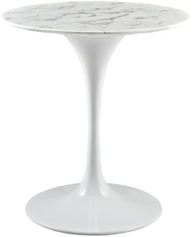 This elegant round table embodies a contemporary yet timeless design, perfect for intimate gatherings or everyday meals. Created with an artificial marble top featuring a beveled edge, it showcases a chic aesthetic that harmonizes effortlessly with any decor. Its sleek tapered metal base not only adds to its retro charm but also provides stability and durability, ensuring it withstands daily use. Located in compact spaces such as breakfast nooks or kitchens, it offers a perfect seating arrangement for two while elevating the overall ambiance of the area.