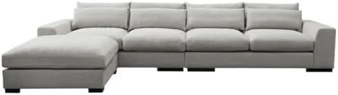 This sofa set includes a modular chaise and an ottoman that offers not only comfort but also multifunctional use; the ottoman doubles as a storage solution for everyday items, helping keep your living area clutter-free. While the robust hardwood frame ensures longevity, assembly may require patience, as it comes in multiple packages which might arrive separately. However, this design allows for creative arrangement in your space to suit individual needs. Some users may find the firmness of the seat less comfortable for extended lounging, but the structure provides excellent support for a variety of seating positions.
