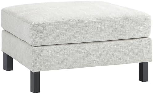 This stylish rectangular ottoman features clean lines and a sleek cream white chenille cover, making it a perfect addition to any living space or bedroom. The pocket spring system adds a layer of stretchy, bouncy comfort, which enhances relaxation, while the solid wood legs provide stability and support. The protective foot pads ensure your floors remain scratch-free, maintaining the aesthetic of your home. With dimensions of 30.3″ W x 28″ D, it serves not only as an ottoman but also as a vanity stool or additional seating in various settings. The flexible nature of the design allows it to function seamlessly in different arrangements, helping you create the desired atmosphere in your home.
