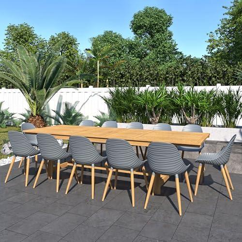 Amazonia Finish Rectangular Extendable Table and 12 Chairs Patio Dining Set, 13-Piece, gray