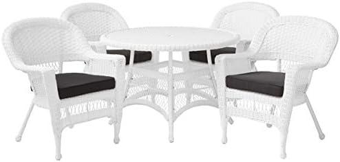 Jeco 5 Piece Wicker Dining Set with with Black Cushions, White