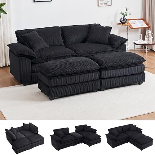 This contemporary sectional loveseat sofa set redefines relaxation and style, making it a standout addition to any living space. Crafted with soft corduroy upholstery and ample cushioning, it provides a comfortable seating experience suitable for long hours. The modular design features generous dimensions, with a total size of 84.6″ x 56.3″ x 34.3″, making it perfectly sized for apartments and home theaters alike. The inclusion of two ottomans not only enhances the versatility of the configuration but also offers options for additional seating or a footrest. Enhanced with two supportive back pillows, this elegant sofa ensures that you sink into a welcoming embrace, alleviating leg pressure and promoting relaxation.