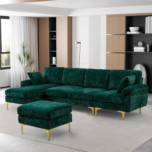 This velvet L-shaped couch offers an elegant design that includes a reversible chaise, allowing you to adapt the sofa to fit either side of your living room. The adjustable recliner armrests provide comfort while watching movies, and the included wood tray and pillows enhance its functionality and aesthetic appeal. With high resilience foam cushions, users can expect both softness and support, making it a welcoming addition to your home. This couch’s dimensions are quite spacious, accommodating up to four people comfortably, while a sturdy solid wood frame ensures durability.