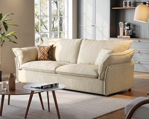 The cloud-inspired design of this sofa offers a seamless blend of style and comfort, featuring soft, pillowy backrests and 23.2″ deep seating that cradles you in relaxation. The breathable linen fabric in a soft beige color adds a light, bright look to any room, making it an inviting focal point in your living space. With its high back and plush pillow-top armrests, this piece is not only aesthetically pleasing but also designed for optimal support, making it perfect for long hours of lounging, reading, or socializing.