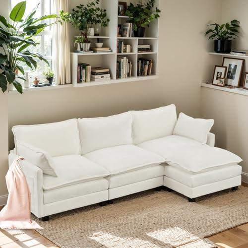 While the design is appealing, there are pros and cons to consider. On the positive side, the easy assembly and dual-layered memory foam cushions provide plush support and a welcoming seating experience. The couch’s versatility makes it perfect for various occasions, from accommodating guests to lounging comfortably. However, some users might find the maintenance of the white fabric challenging, as it may require more frequent cleaning to keep its fresh appearance. this sectional sofa is a beautiful blend of functionality and elegance, suited for those seeking both aesthetics and comfort in their living space.