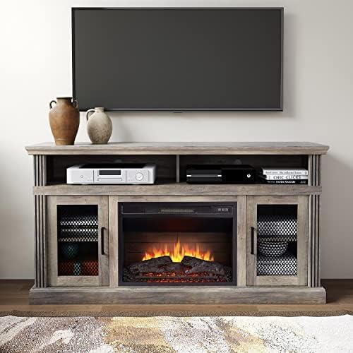 Charming 60-Inch TV Stand with Electric Fireplace and Sliding Doors
