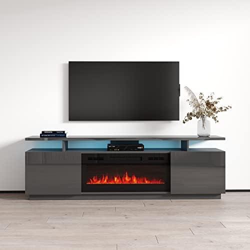 Modern High Gloss Stand with Electric Fireplace and LED Lights