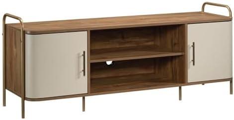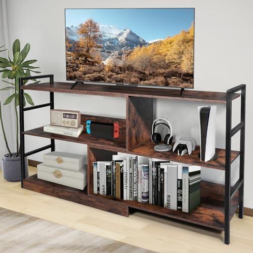The TV stand offers ample storage with a combination of one locker and two open spaces, perfect for organizing various media devices and accessories. The adjustable shelf within the locker allows customization based on your needs, while two cable management ports keep cords tidy and out of sight. However, some users may find its size limiting if they require more extensive storage options. Additionally, although the rustic design is appealing, it may not suit all modern decor styles. this piece seamlessly merges functionality and style, making it a fantastic addition to your home. Explore More About This Product