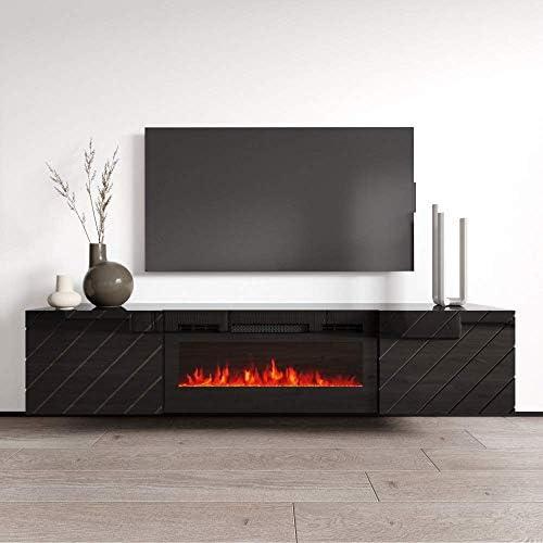 Modern High Gloss Floating Fireplace TV Stand for TVs up to 80″