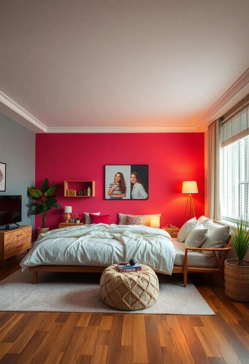 - Wall Color: Paint the main walls a soft neutral hue while showcasing a bold accent wall.