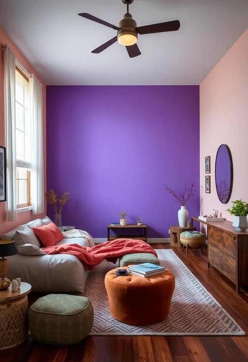 - Sunset Gradient: Blend rich oranges and yellows with deep purples for a sunset-inspired room.