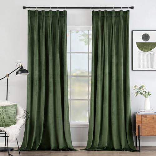 These elegant velvet panels provide an ideal combination of style and functionality for any living space. With a luxurious olive green hue, they add a touch of sophistication to bedrooms, living rooms, or any other area of your home. The fabric is not only visually appealing but also features a super soft texture, making these drapes a delight to touch. Additionally, they come with versatile hanging options, including a rod pocket and back tab, ensuring easy installation and styling to suit your preferences. Their pinch pleated design enhances their aesthetic while also contributing to their effectiveness in room darkening, blocking approximately 80% of sunlight.