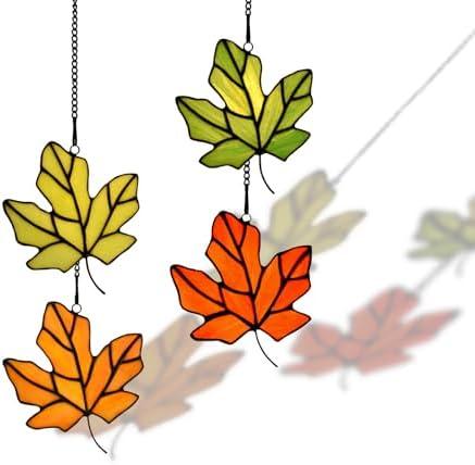 Unique Stained Glass Home Decorations with Set of Four Maple Leaf Ornaments