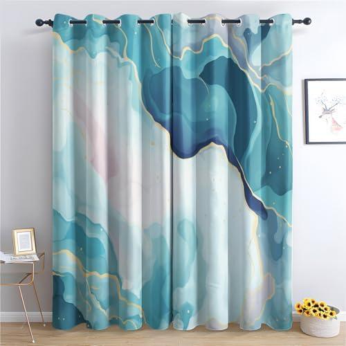 Aqua Blue Marble Drapes for Stylish Home Decor