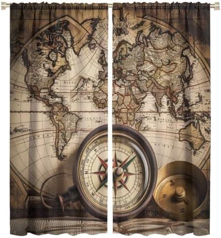 Transform your living space with elegant drapes that offer both style and functionality. These vintage-inspired panels feature a beautifully detailed world map design, enhanced with a classic compass motif that adds an adventurous edge to any room. Measuring 21 inches wide by 45 inches long for each panel, they easily accommodate most window sizes while the rod pocket design simplifies installation. Not only do they infuse your decor with character, but they also provide thermal insulation, helping to keep your room comfortable throughout the year.