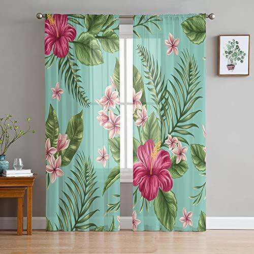 Light-Filtering Curtain Panels with Tropical Hibiscus Design