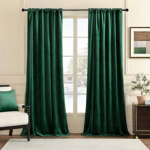 Transform your living space with these sumptuous velvet curtains that exude luxury while providing practical benefits. Made from high-density polyester, they not only contribute to your home’s aesthetic with their rich emerald green hue but also feature a blackout layer that effectively blocks 60-80% of sunlight. This makes them ideal for bedrooms or living rooms where light control is essential. Additionally, the thick fabric helps in reducing noise, maintaining room temperatures across seasons, and enhancing privacy, all of which contribute to energy savings in your home.