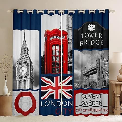 Stylish Blackout Curtains Depicting Iconic London Elements