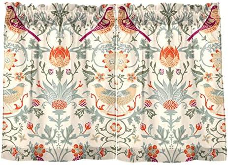 Stylish Vintage Floral and Bird Tier Curtains for Kitchen Windows