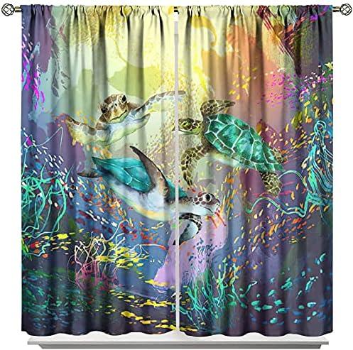 Bright Colorful Underwater World Turtle Blackout Panels for Bedrooms