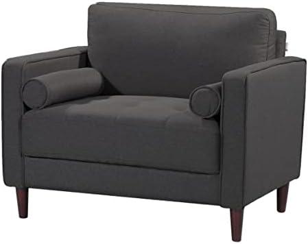 This chair combines minimalistic style with exceptional functionality, making it a perfect addition to small spaces. Its compact design includes a sturdy construction with a kiln-dried solid hardwood eucalyptus frame and elegant black legs, ensuring durability while maintaining an inviting aesthetic. The high-density foam seat cushions and pocket Dream Coils construction provide unparalleled comfort, while the removable back cushions and matching pillows enhance its versatility. Upholstered in durable heather grey fabric, it not only offers a modern look but also makes cleanup effortless, allowing you to enjoy gatherings without worrying about spills.
