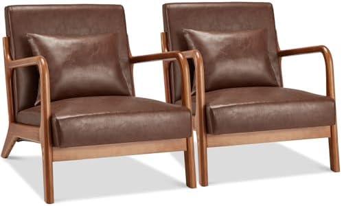 These stylish accent chairs are designed for both comfort and aesthetic appeal, featuring soft, high-density sponge padding that invites you to sink into relaxation. Wrapped in sleek faux leather, they effortlessly enhance your living space with a touch of modern elegance. Their robust oak frame can support up to 350 pounds, making them not only chic but also durable and practical. Each chair is equipped with anti-slip pads to protect your floors while ensuring stability and safety during use. Whether you’re enjoying a book, hosting guests, or simply unwinding, these chairs adapt beautifully to various settings.